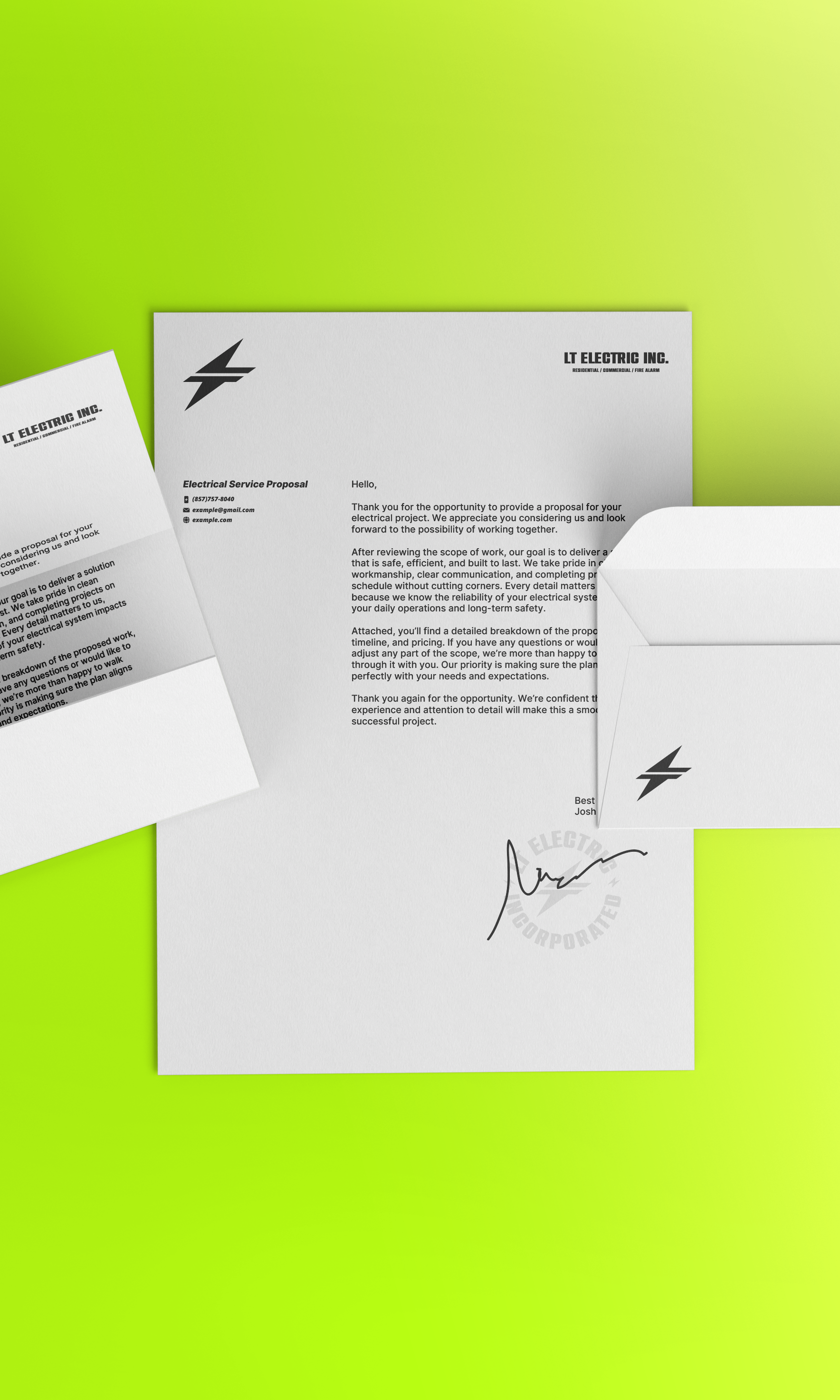 I redesigned the bolt with cleaner geometry and stronger balance to shift the tone from casual to professional. Then I looked for a way to connect the symbol directly to the company name. By adjusting and separating portions of the bolt, the shape subtly forms the letters “L” and “T.” This hidden structure adds memorability without complicating the design.